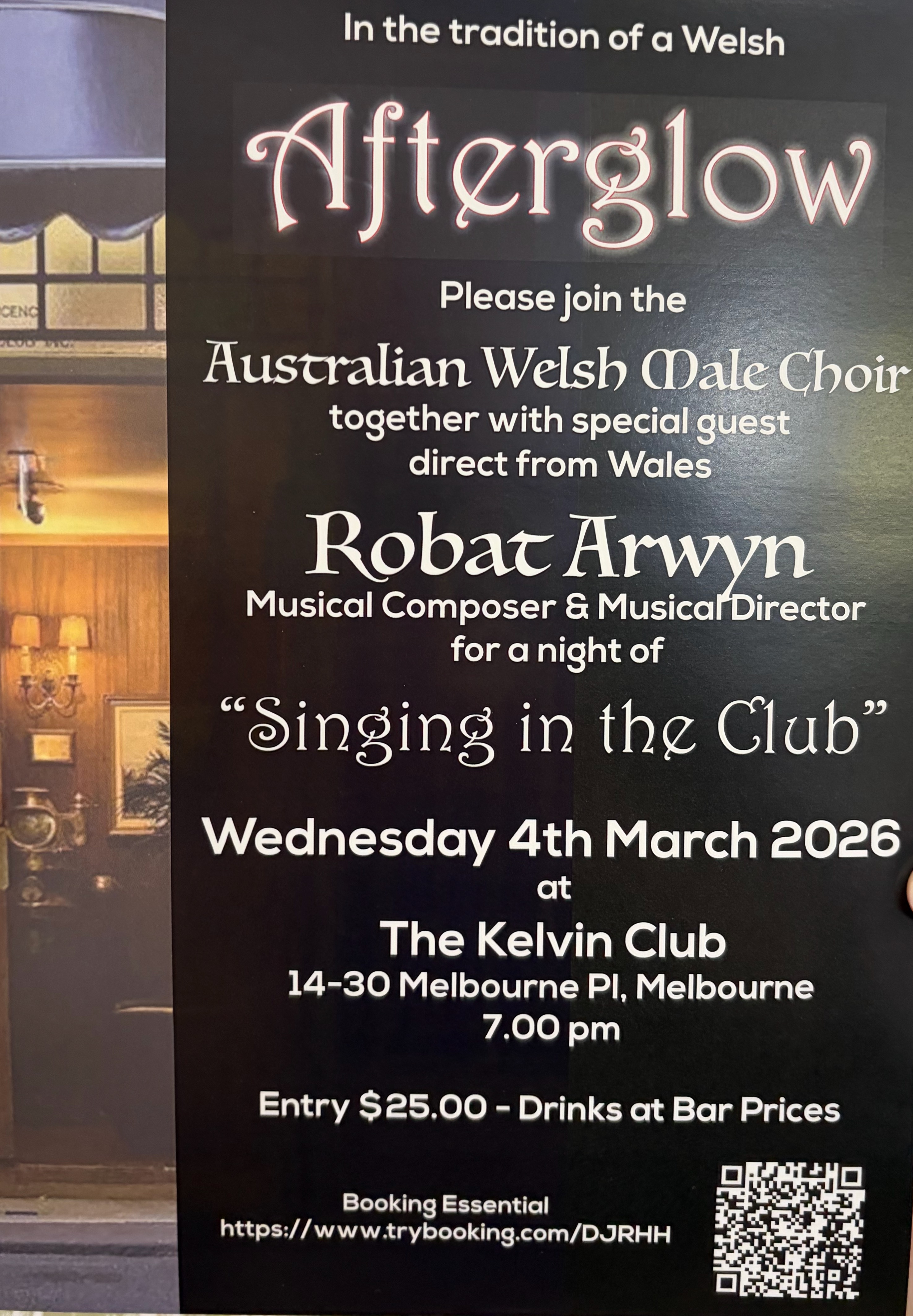 Wednesday 4th March - Afterglow with Robat Arwyn "Singing in the Club"